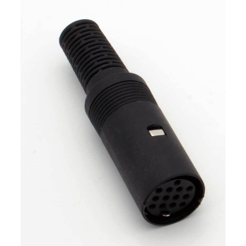This 13 pin DIN female inline jack connector is compatible with standard DIN plugs, including the 13 Pin DIN Male Inline Plug (PAN-DIN-46000-13P). Ideal for connecting audio equipment, music gear, keyboards, vintage electronics, and custom control cables.