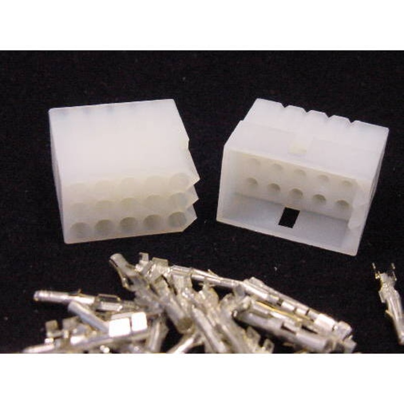 This 15-pin connector pair is a Molex/Amp equivalent, making it interchangeable with many standard connectors in the industry. Use it as a replacement or upgrade in automotive, hobby, or electronic applications. The simple crimp-and-insert design means fast installations and clean results every time.