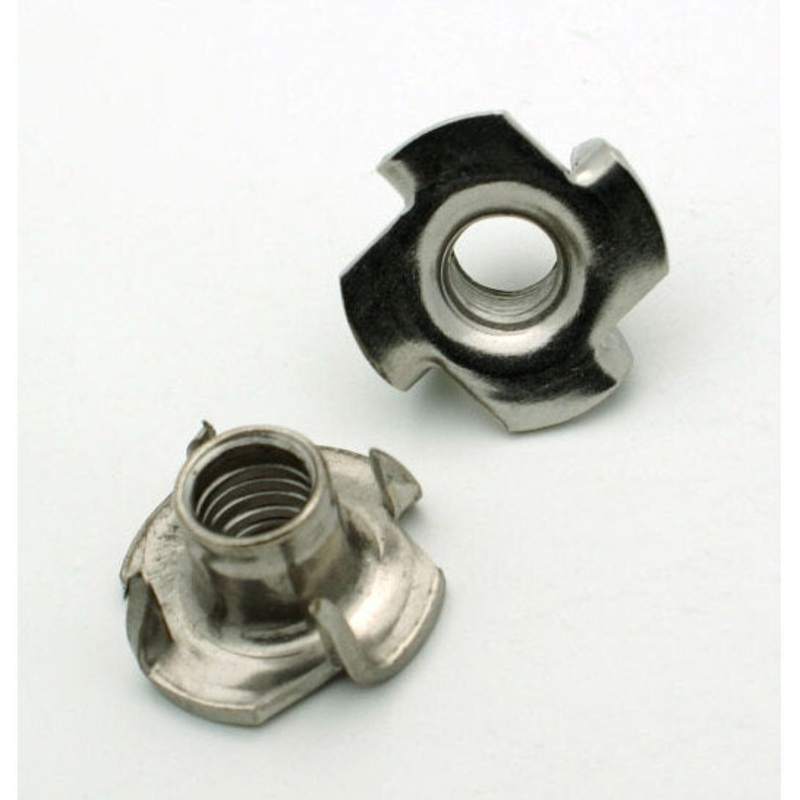 Our 3/8-16 stainless steel tee nut is designed for strength and durability in demanding applications. This stainless steel tee nut features long, sharp prongs that grip securely into wood, particle board, plastic, or similar soft materials, ensuring a firm and lasting hold that resists turning and loosening.