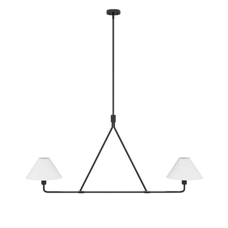 46.45 in. 2-Light Kitchen Island Linear Chandelier Classic Matte Black Pendant Light with fabric shades