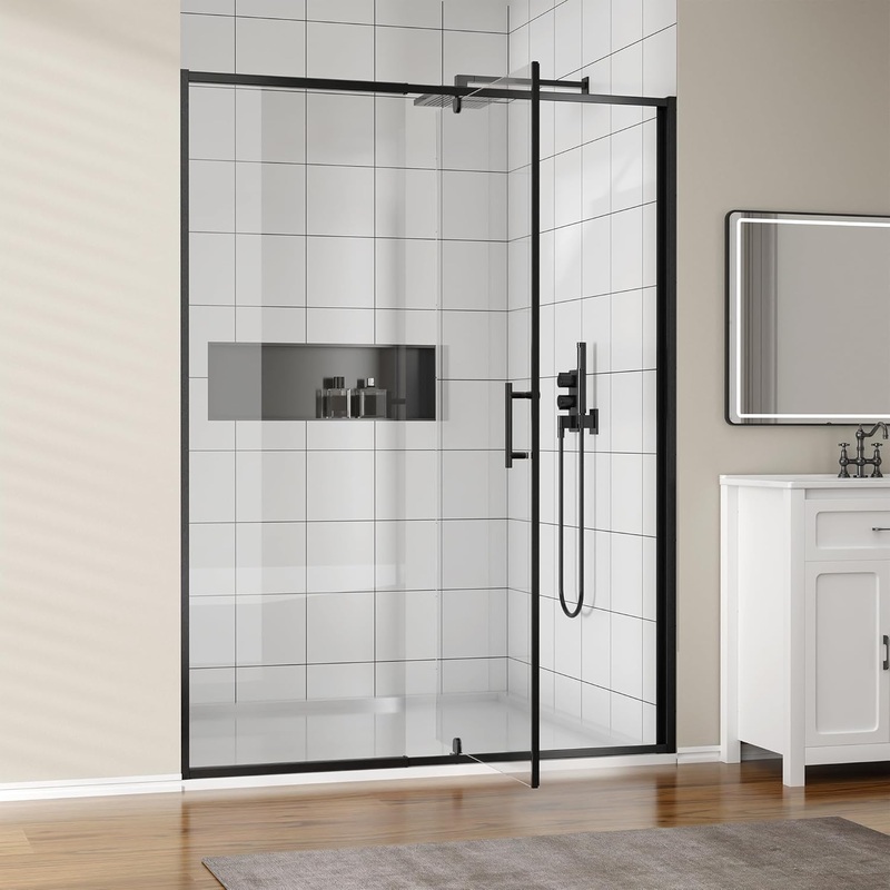 50-54″ W x 71″ H Pivot Glass Shower Door,Pivot Sliding Shower Door with 1/4″(6mm) Clear Glass,Mate Black