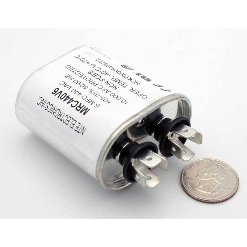 Motor Run Capacitor, 6.0 MFD, 440VAC Oval CaseReliable 6.0 MFD 440VAC Motor Run Capacitor for Everyday UseUpgrade or replace your motor run capacitor with this dependable 6.0F (MFD) motor run capacitor, rated for 440VAC. Perfect for DIY home repairs and ev