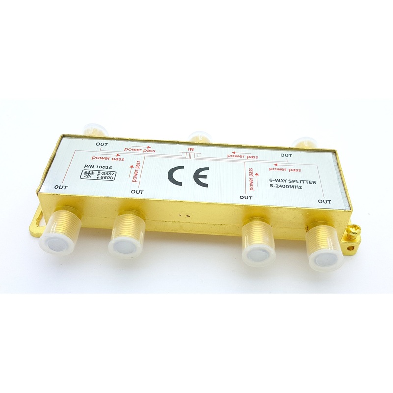 6-Way 1GHz Cable Splitter Reliable Coaxial Signal Distribution for Home EntertainmentEasy Cable Signal Distribution for Your HomeThe 6-way 1GHz cable splitter is a perfect solution for splitting your cable TV, digital cable, or cable modem signal to up to