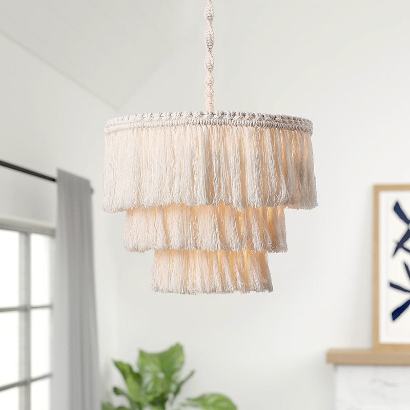 L1230Aiwen 1 -Light White Bohemian/global For Use in Bedrooms, Dining Rooms, Foyers, Kitchens, Living Rooms ChandelierThe boho hanging lamp will look so good for a boho decor theme. And suitable for living room, bedroom, baby room, boho decor, wedding deco