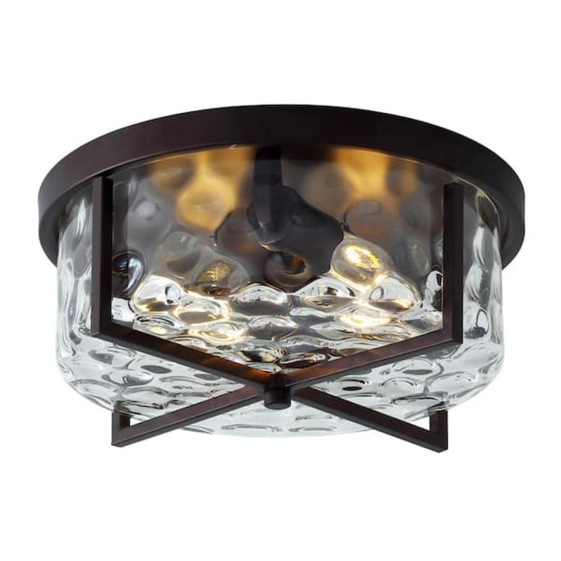 - Modern farmhouse aesthetics this stunning flush mount ceiling light with metal finishes and glass design, beautiful and durable, fully presents a charming modern farmhouse appeal, it features an enclosed water ripple glass cover with faux wood canopy, surrounded by hand-treated black metal bands, adding a visual farmhouse aesthetics to a modern flair, centered by 2 outspread arms inside offer elegant shine while enhancing plenty of ambient glow for your bedroom, kitchen, entryway, hallway and bathroom