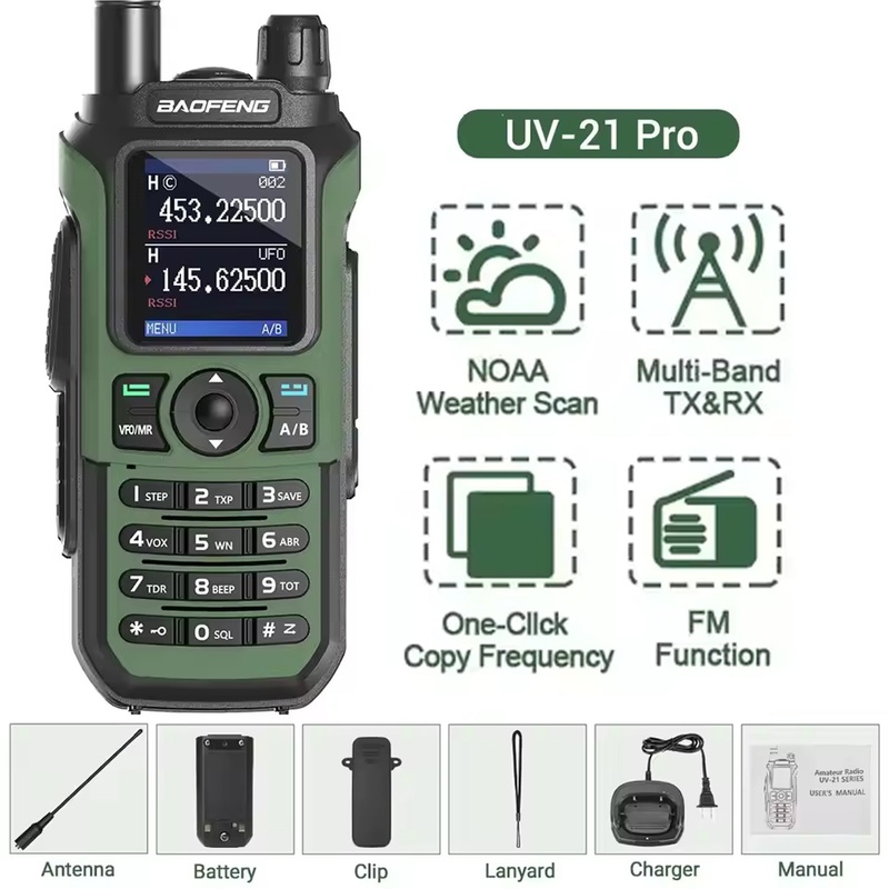 Long Range Baofeng UV-21 Pro Walkie Talkie Tri-Band, Waterproof, Wireless Frequency Copy, and Type-C ChargingEasy and Reliable Two-Way Radio CommunicationStay connected with the Baofeng UV-21 Pro walkie talkie, built for everyday users who want clear, long