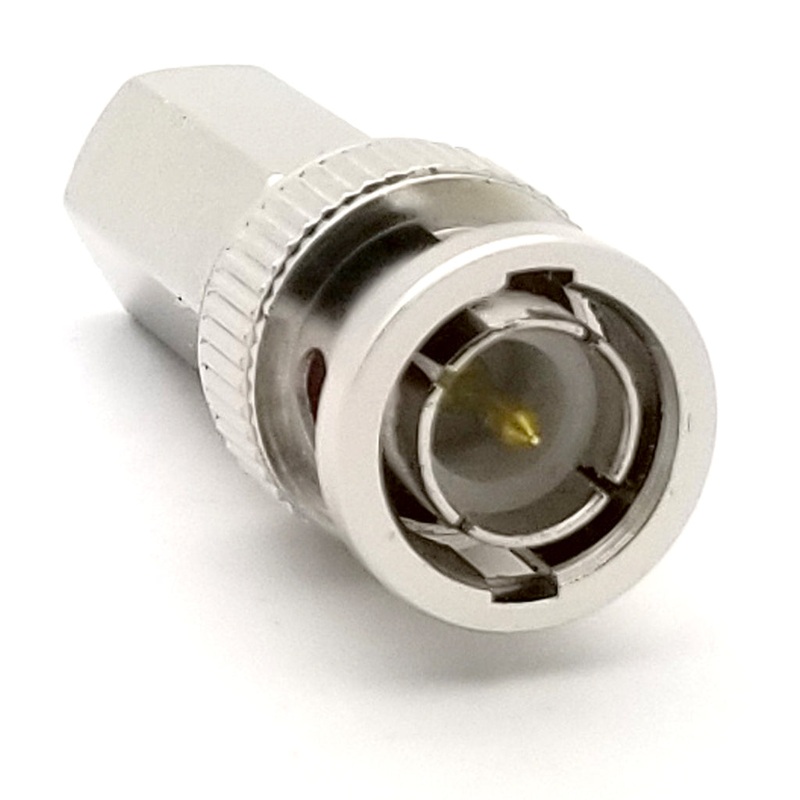BNC Male Twist-On Connector for RG-59 Coaxial CableEasy-to-Install BNC ConnectorThis BNC male twist-on connector is designed for quick and reliable installation with RG-59 coaxial cable. No crimping or soldering tools are requiredjust twist it on for a sec