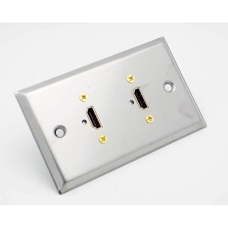 Dual HDMI Stainless Steel Wall Plate Easy Home Theater ConnectivityUpgrade Your Space with a Dual HDMI Wall PlateSimplify your home theater or media room setup with this dual HDMI wall plate. Designed for hassle-free installation, this HDMI wall outlet let