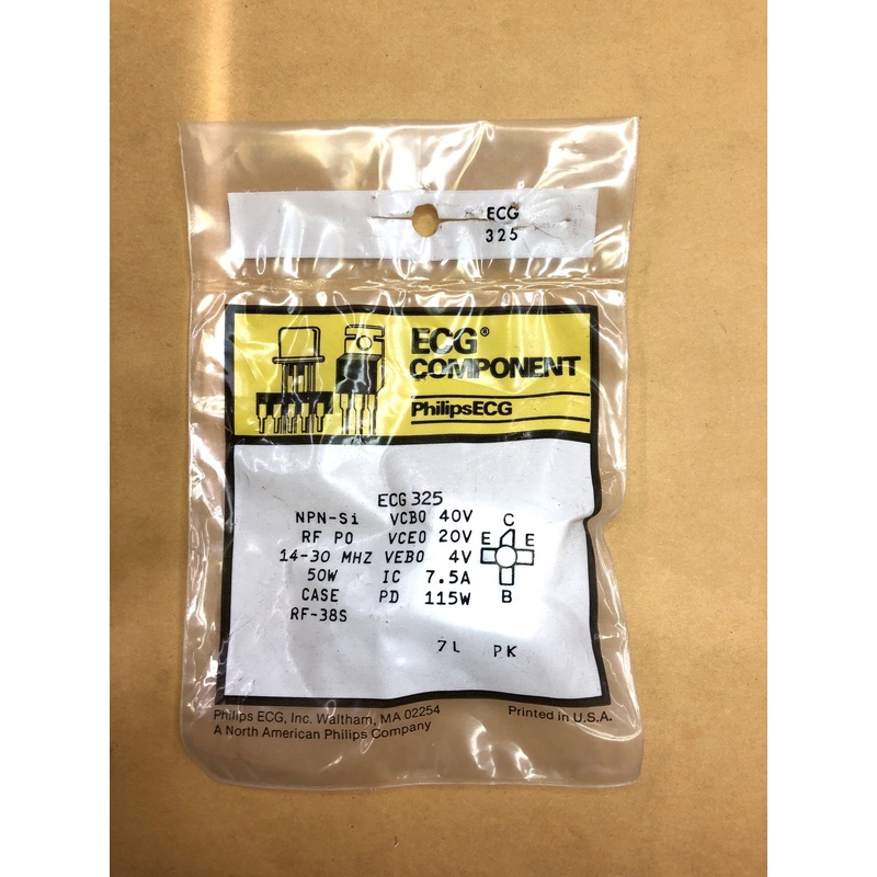 ECG325 NPN Silicon RF Transistor [email protected], 115W Max ~ 14 to 30MHz. RF-38S PackageThe ECG318 isa silicon NPN RF power transistor designed for power amplifier