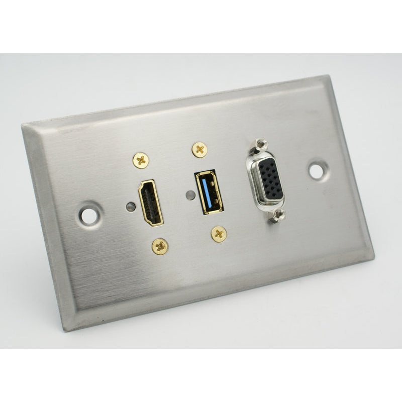 Upgrade your space with this premium HDMI VGA USB 3.0 stainless steel wall plate. Designed for everyday consumers, this versatile wall plate combines three essential connectionsHDMI, VGA (DB-15HD), and USB 3.0in one convenient, professional-looking package.
