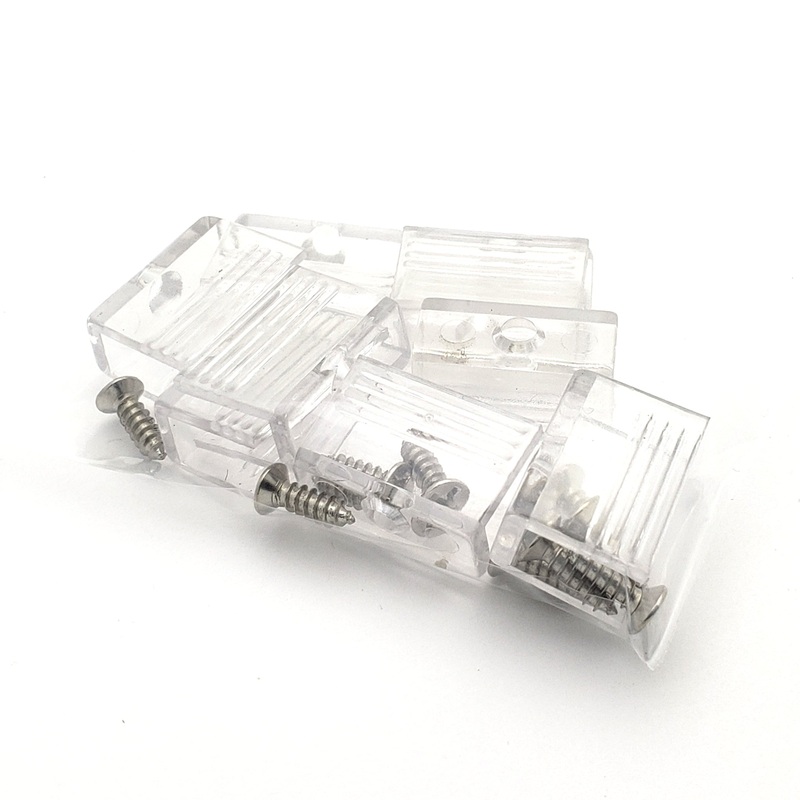 Installation is straightforward: each clip features a central mounting hole compatible with standard screws, allowing for quick attachment to various surfaces such as walls, ceilings, or cabinetry. The design facilitates easy removal and repositioning of the LED strips without causing damage to either the clips or the mounting surface.