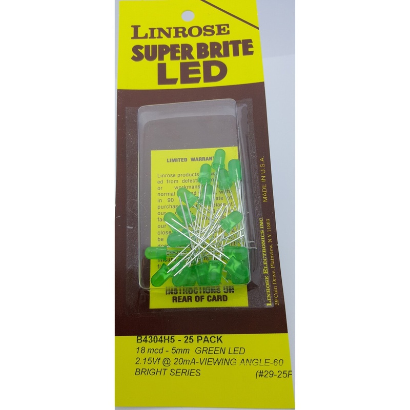Product Reference: Linrose B4304H5-25PK, 5mm Green LED Bulk Pack