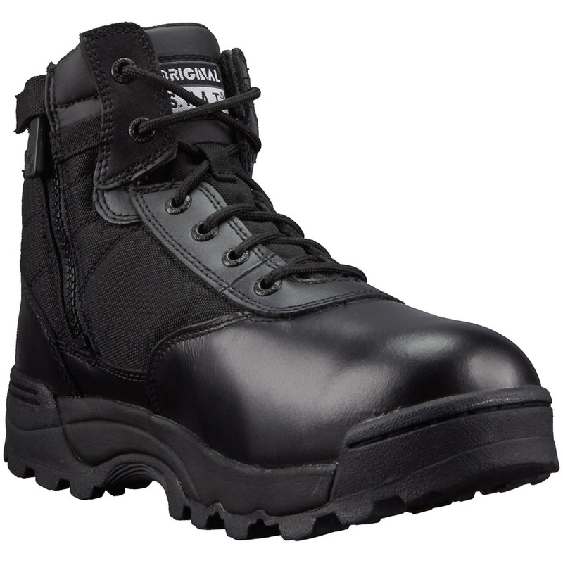 For law enforcement professionals looking for a top of the line, mid-height tactical boot, the Original SWAT Classic Men’s 6in Hot Weather Side-Zip Tactical Boot 116401 delivers all around versatility and performance in any environment. A convenient side zipper enables easy entry and removal for those on the go. This lightweight tactical boot features 100% full grain leather and Cordura 1000 denier nylon upper for lightweight durability and comfort. A polishable leather toe keeps gives this boot a uniform appearance at all times. Original Footwear packs the most advanced footwear technology into its boots. A foam padded collar and tongue provides protection and increases ventilation and cooling. A custom-molded phylon EVA midsole gives lightweight comfort and excellent shock absorption while a steel shank provides superior support. A custom-molded thermoplastic heel counter and toe box is another footwear technology feature that makes Original SWAT footwear one of the most advanced tactical footwear companies on the market today.