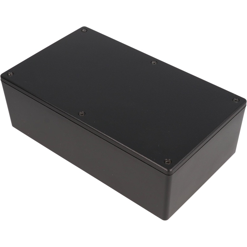 Drill, cut, or modify this durable black ABS enclosure to fit your specific needs. The smooth finish is easy to work with and provides a clean appearance. Built-in standoffs make mounting a printed circuit board (PCB) simple and secure.