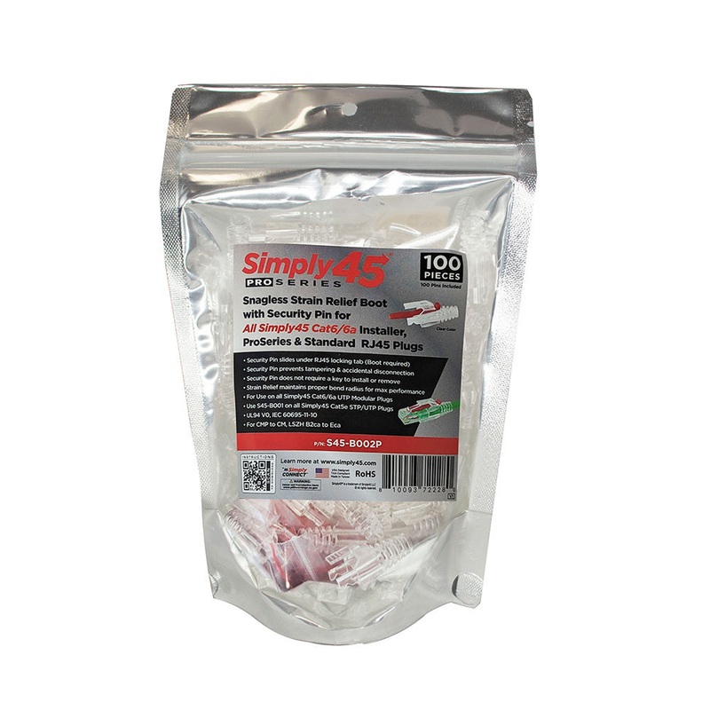 The ProSeries strain relief is engineered for compatibility with all Simply45 Cat6 and Cat6a UTP RJ45 modular plugsboth pass-through and standard. Its ideal for custom network cables at home or in the office, delivering the best in network cable strain relief and durability.