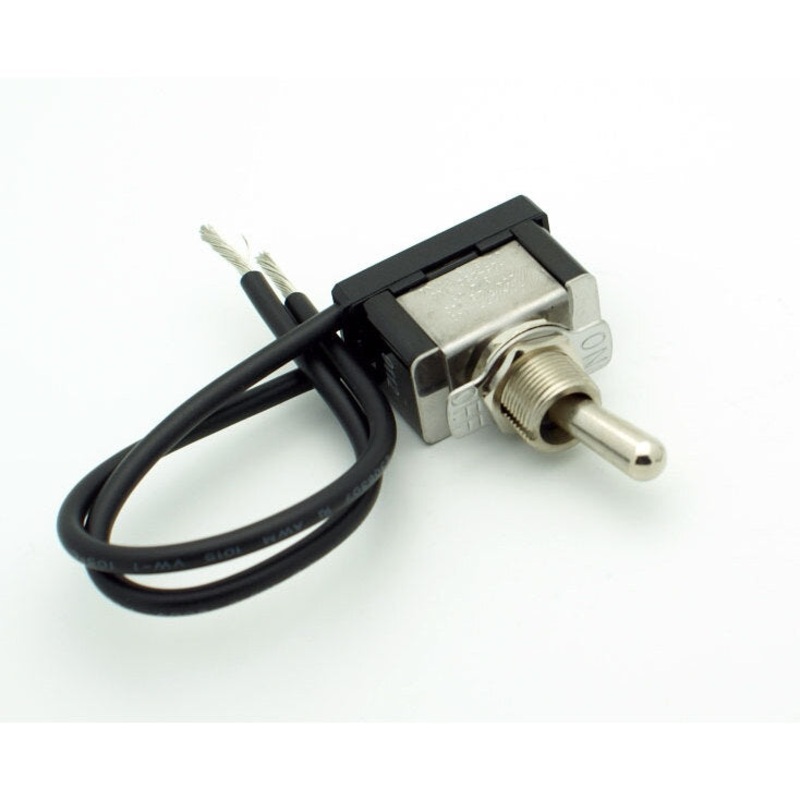 SPST Toggle Switch with Wire Leads ON/OFF, 20AEasy-to-Install SPST Toggle Switch with Wire LeadsThis low-profile SPST toggle switch is designed for easy installation and dependable performance in a wide variety of electrical projects. Pre-installed 6" 14AW