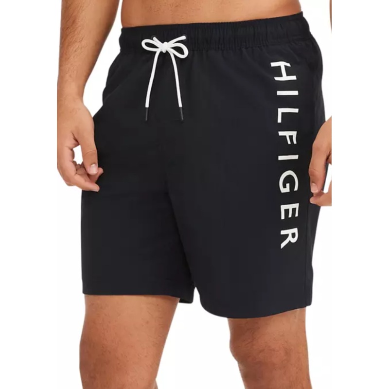 Style: 78J0589Heightened by an iconic Tommy Hilfiger logo, these swim trunks are perfect from shore to sail.Product Details:Elastic waistbandImported7" InseamCotton, nylonMachine washableSize Chart: