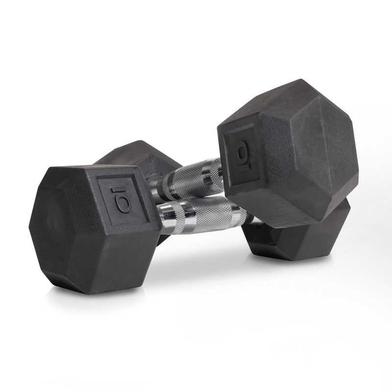 TRU GRIT Rubber Hex Dumbbells feature aWelded Steel Corenot glued or threaded like our competitors. Tru Grit Fitness Rubber Hex Dumbbells are packaged and soldindividually. Weights ranging from 2.5lb to 95lb each. The rubber hex dumbbell design is perfect to prevent the dumbbell from rolling, priced for any budget, high quality, created with performance longevity in mind. Hex Dumbbells by Tru Grit are made with heavy-duty rubber heads to minimize noise andmitigate typicalwear and tear to the equipment and your floor. Rubber Hex Dumbbells have a chrome-plated handlethat is ergonomically designed for any grip style or hand. While other dumbbells on the market use cheap, poor quality rubbers we proudly use high quality Thermal Plastic Rubber that lasts and does not leave your gym smelling like a set of tires.