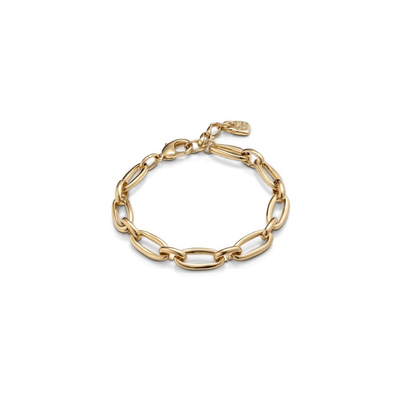 Bracelet featuring large-sized oval-shaped links and a lobster clasp. Just like all of UNOde50s jewelry, it is handmade in Spain through a 100% artisanal process and uses a gold-plated metal alloy. Flaunt this one-of-a-kind piece of jewelry and make it a key feature in your collection.