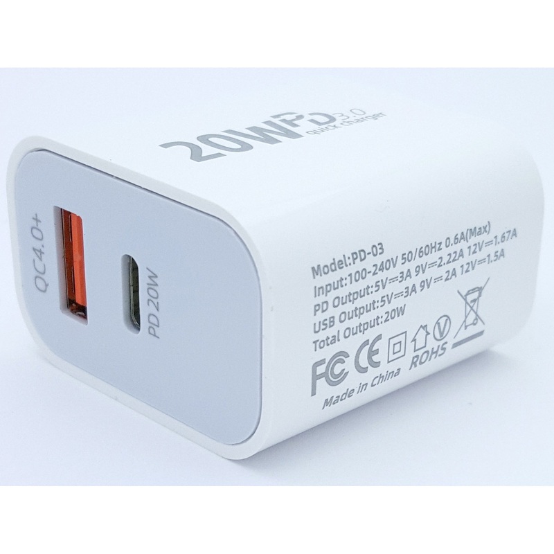 USB-C Charger 20W QC4.0 Fast Charger for Cell Phones20W USB-C Fast Charging Made SimpleUpgrade your mobile charging experience with this powerful USB-C charger. Delivering an impressive 20W of power and QC4.0 (Quick Charge 4.0) support, this USB-C wall cha