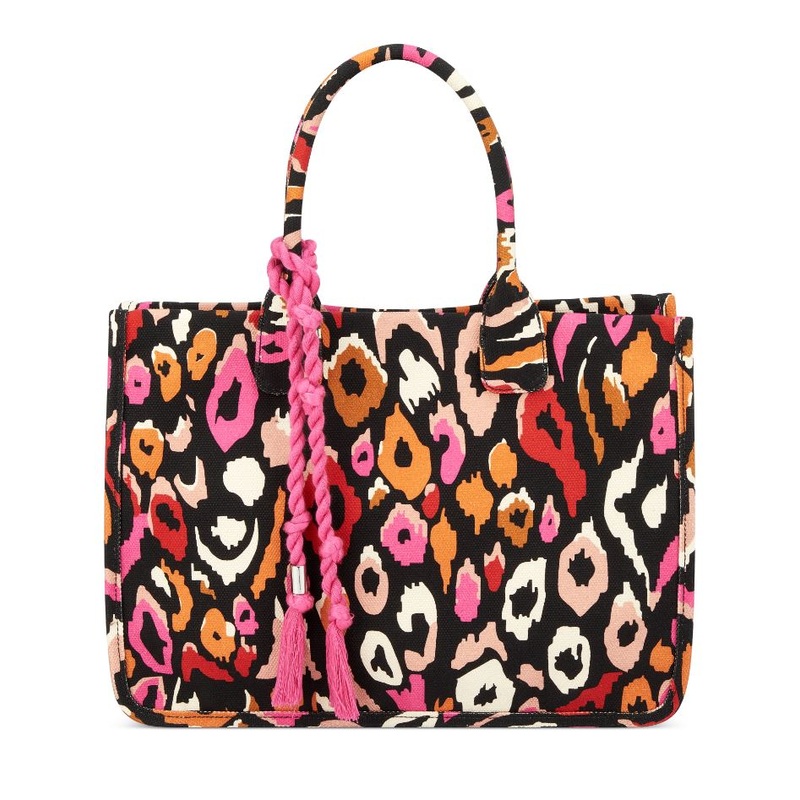 Oversize totes made a huge splash on spring runways and the artisanal-vibe Orla is a cool way to wear the trend. Crafted of durable canvas or terry cloth, the bag is available in a variety of statement-making printsfrom zebra stripe to tie-dyeand textures. Its detailed with a twisted rope fob that adds color and motion. Rolled handles let you comfortably carry the tote in hand or on your shoulder.